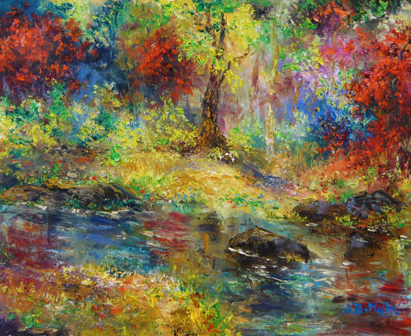 A.B. Makk absorbed his parent’s techniques, developed a blend of his own and now works in his own unique genre. He starts with colors where Monet and Renoir left off; he blends color after color in combinations that historically have not been used together to create sun-drenched warmth on a cool day or conversely, to insulate wafts of cool air on a hot day. Like Turner, his scenes of nature evoke a strong sense of mood. His manipulation of light to express beauty and dignity, his ability to paint a complex and many-faceted feeling as opposed to merely a beautiful scene and his sense of depth and serenity are among the qualities that have moved A.B. Makk into the forefront of notable contemporary artists.