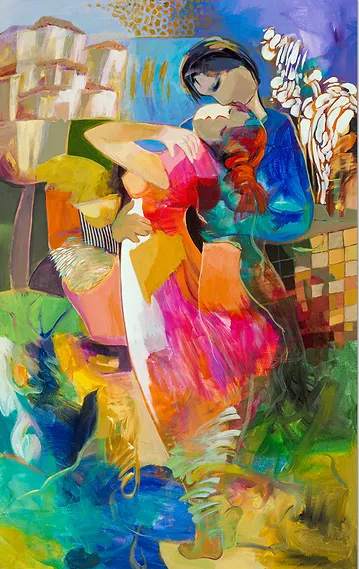 Hessam’s work is characterized by its bold colors, fluid movement, and expressive figures, often capturing moments of joy, passion, and the human experience. His unique style blends elements of abstract expressionism and figurative art, making his pieces both visually striking and emotionally resonant.
