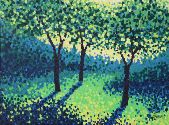 Jim is self-taught: for him, painting involves listening visually to source joy, light, and harmony for the images on his canvas and to explore how everything is connected.